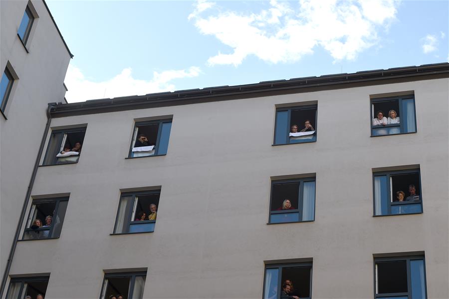 5月30日,在奧地利維也納“時(shí)代精神”酒店內(nèi),人們?cè)诜块g窗口欣賞歌劇演出。當(dāng)日,奧地利首都維也納的一家名為“時(shí)代精神”的酒店為迎接“解封”后恢復(fù)營業(yè),在其庭院內(nèi)舉辦“窗口音樂會(huì)”。按照奧政府此前公布的“解封”時(shí)間表,從29日起,賓館酒店以及健身房、游泳池和游樂場(chǎng)等休閑娛樂場(chǎng)所有條件恢復(fù)運(yùn)營。新華社記者郭晨攝