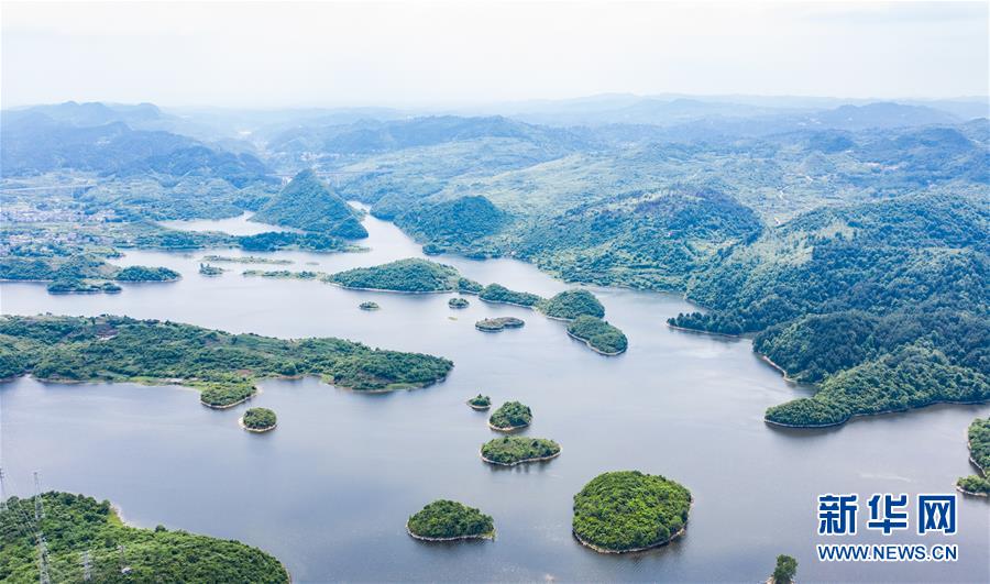 6月2日拍攝的貴陽市阿哈湖國家濕地公園(無人機(jī)照片)。初夏時(shí)節(jié),貴州省貴陽市阿哈湖國家濕地公園草木蒼翠,風(fēng)景如畫,吸引人們前來休閑游玩。新華社記者陶亮攝。
