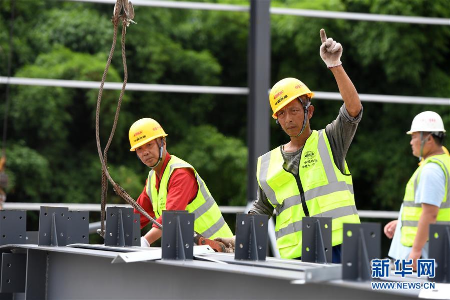 6月9日,工人在位于重慶市巴南區(qū)的渝湘高鐵重慶段建設(shè)工地現(xiàn)場作業(yè)。新華社記者唐奕攝