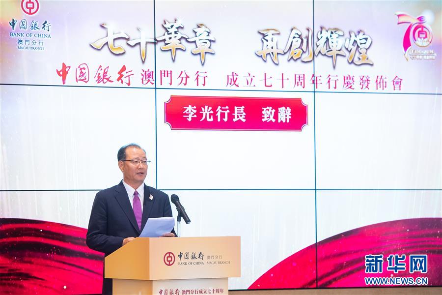 6月21日,中國(guó)銀行澳門分行行長(zhǎng)李光在直播發(fā)布會(huì)上致辭。當(dāng)日,中國(guó)銀行澳門分行舉行在線直播發(fā)布會(huì),慶祝中國(guó)銀行澳門分行成立70周年。新華社記者張金加攝