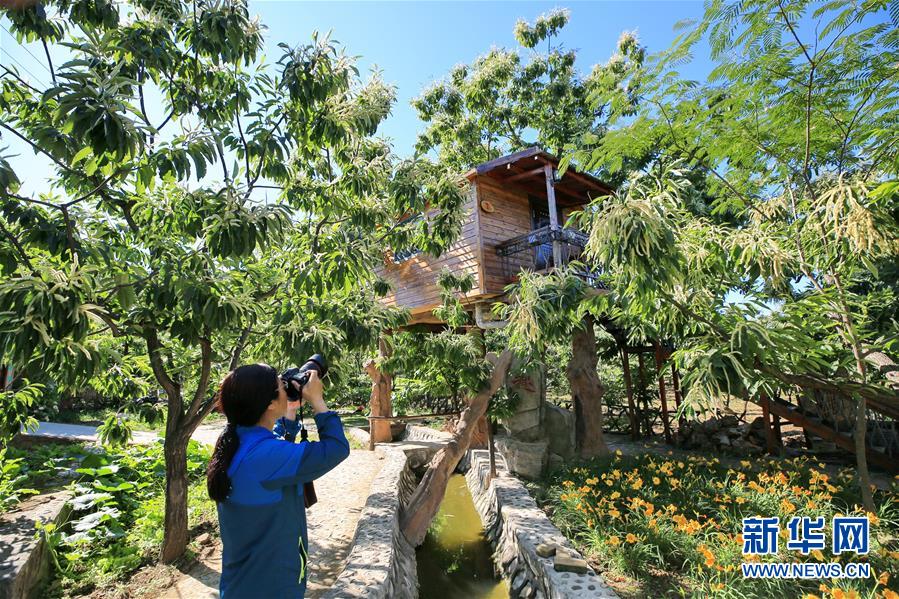 6月21日,游客在河北省遷西縣漢兒莊鄉(xiāng)一處旅游景區(qū)內拍攝栗花。新華社記者牟宇攝