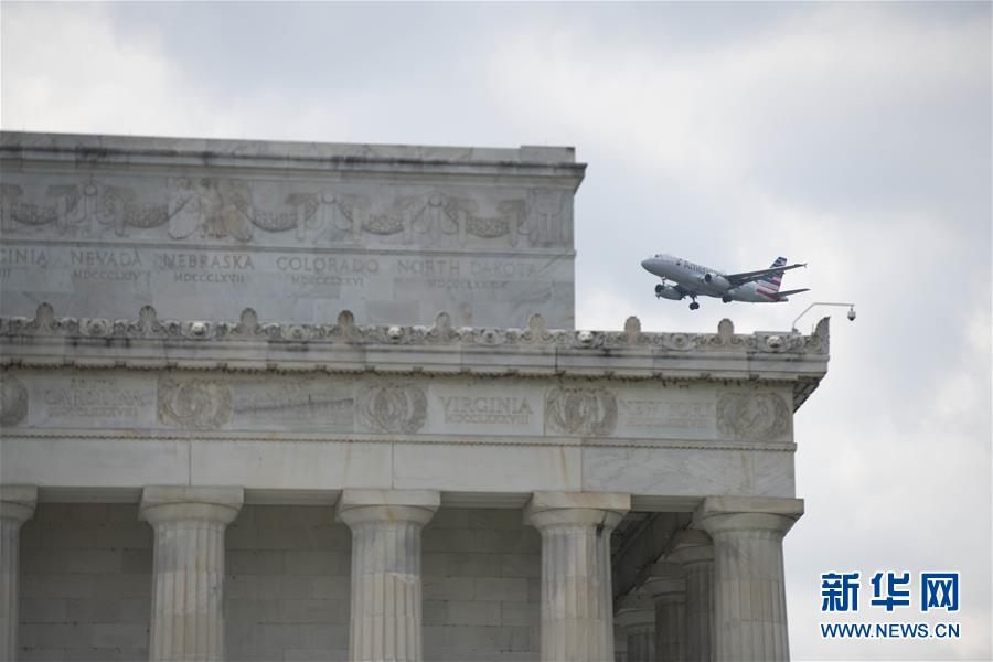 6月22日,在美國(guó)首都華盛頓,一架飛機(jī)從林肯紀(jì)念堂上空飛過。美國(guó)約翰斯·霍普金斯大學(xué)22日發(fā)布的新冠疫情最新統(tǒng)計(jì)數(shù)據(jù)顯示,美國(guó)累計(jì)死亡病例超過12萬例。新華社記者劉杰攝