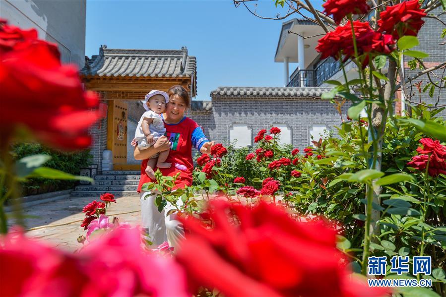 河北省邯鄲市邯山區(qū)河沙鎮(zhèn)小堤村村民在家門口賞花(5月29日攝)。新華社記者王曉攝