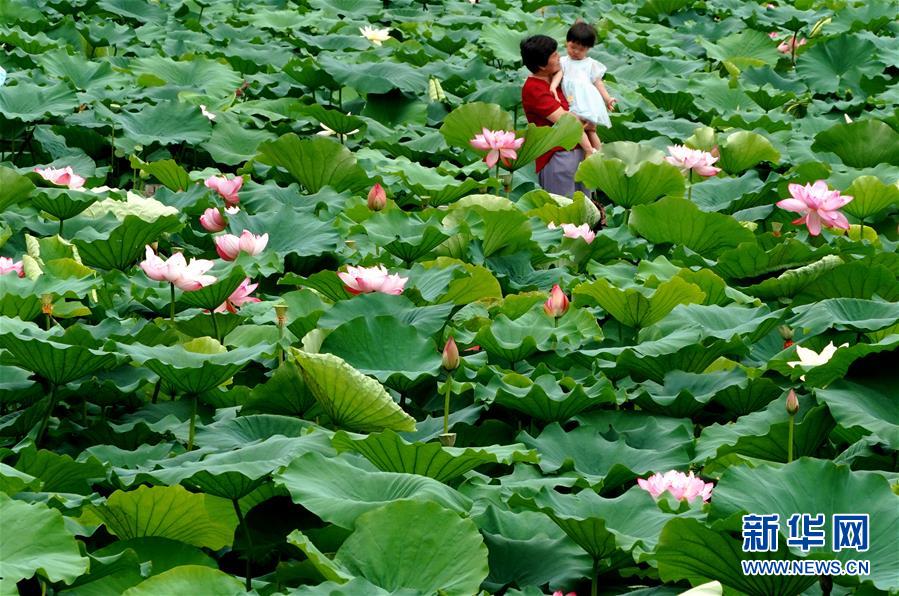 6月30日,市民在河南鄭州紫荊山公園內觀賞荷花。新華社記者李安攝