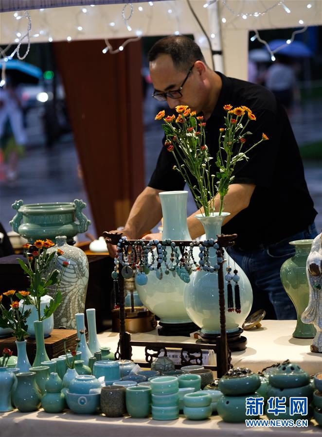7月10日,工作人員在嘉年華現(xiàn)場特色商品攤位忙碌。新華社記者徐昱攝。