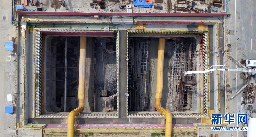 7月29日,“萬里黃河第一隧”——濟(jì)南黃河隧道工程施工人員在施工作業(yè)(無人機(jī)照片)。新華社記者王凱攝