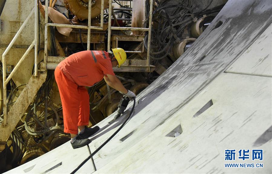 7月29日,“萬(wàn)里黃河第一隧”——濟(jì)南黃河隧道工程施工人員在施工作業(yè)。新華社記者王凱攝