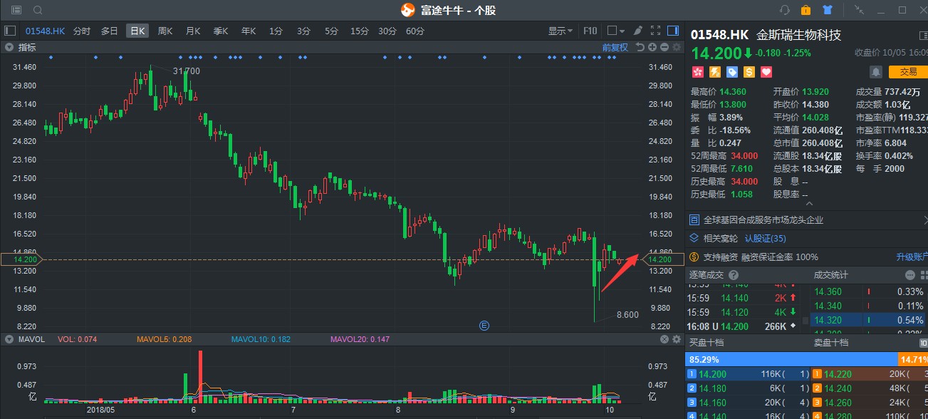 談及去年的港股牛市,金斯瑞應(yīng)該算得上是生物醫(yī)藥板塊中,非常引人注目的一只股票。就算2018年隨大市回調(diào),但表現(xiàn)仍可圈可點(diǎn):受益港股通北水資金利好,成交量異?;钴S,成交量平均每日達(dá)到2000萬(wàn)股,總額平均4.08億港元。細(xì)數(shù)港股通標(biāo)的,有如此活躍成交量的股票確實(shí)不多。