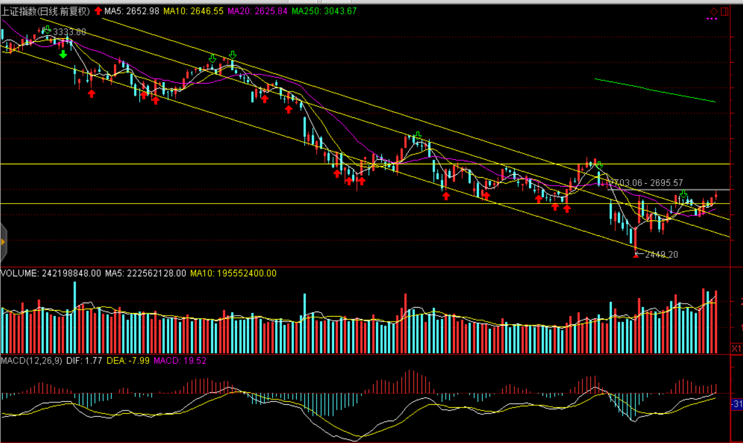 技術(shù)面:上周周線量價配合震蕩上揚趨勢,自10月19日見底以來運行21個交易日,短期指數(shù)仍有反復上揚需求,本周20周均線面臨壓力(滬綜指2700點一線、創(chuàng)業(yè)板1430點一線)。