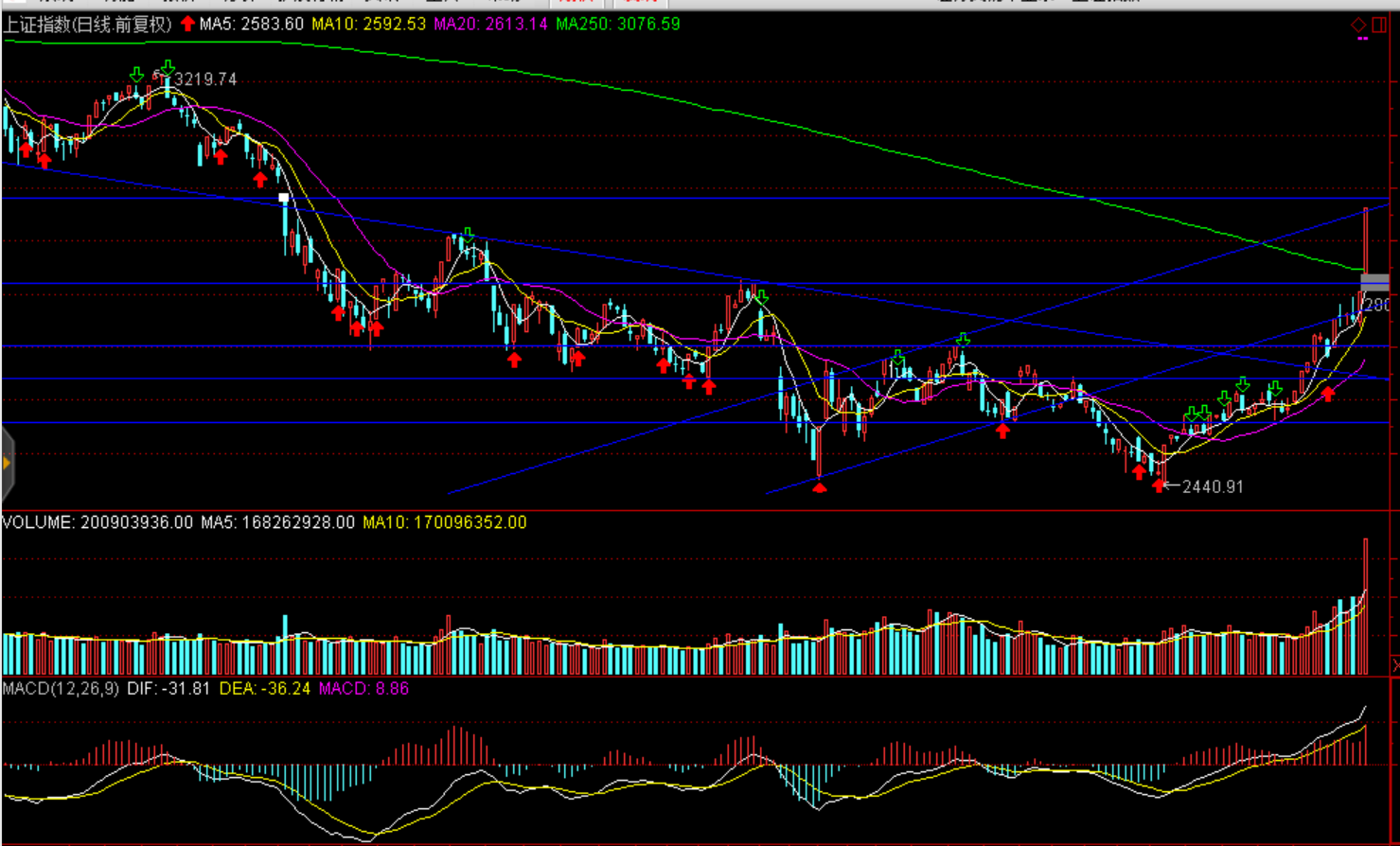 周一兩市大幅放量、強(qiáng)勢上揚(yáng),三大股指均以大陽報收。上證綜指收漲5.6%報2961.28點(diǎn),創(chuàng)2015年7月以來最大日漲幅、深證成指漲5.59%報9134.58點(diǎn)、創(chuàng)業(yè)板指漲5.5%報1536.37點(diǎn)、上證50漲6.28%。兩市巨量成交1.04萬億元,環(huán)比大幅增加4182億元,刷新2015年11月以來新高;北上資金結(jié)束連續(xù)18日凈流入,凈流出7億元;盤面看券商、保險、銀行、5G通信、國產(chǎn)軟件、金融科技板及創(chuàng)投塊漲幅居前。整體看市場受到中美貿(mào)易磋商達(dá)成共識、金融供給側(cè)改革內(nèi)外利好因素影響,場外資金加速進(jìn)場,市場進(jìn)入階段性亢奮。