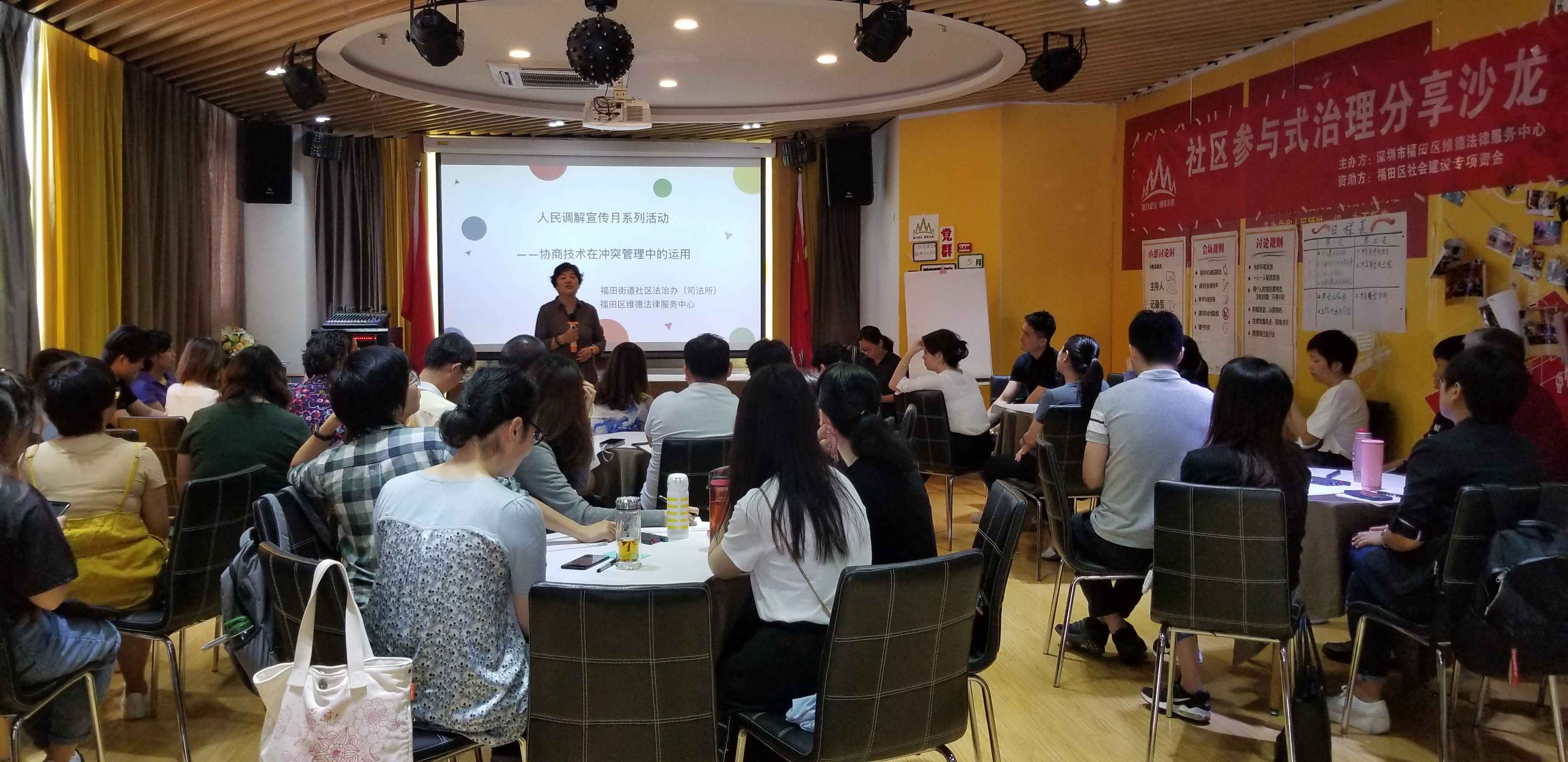 本次主題分享沙龍旨在提高律師、社工、社區(qū)工作人員、勞資矛盾調(diào)解員等主體在沖突管理方面的能力,充分發(fā)揮不同專業(yè)人員在社區(qū)矛盾與沖突中的積極作用。活動以“協(xié)商技術(shù)在沖突管理中的運(yùn)用”為主題,邀請來自北京的社區(qū)參與式治理與發(fā)展領(lǐng)域的專家宋慶華老師為參與者帶來培訓(xùn)。