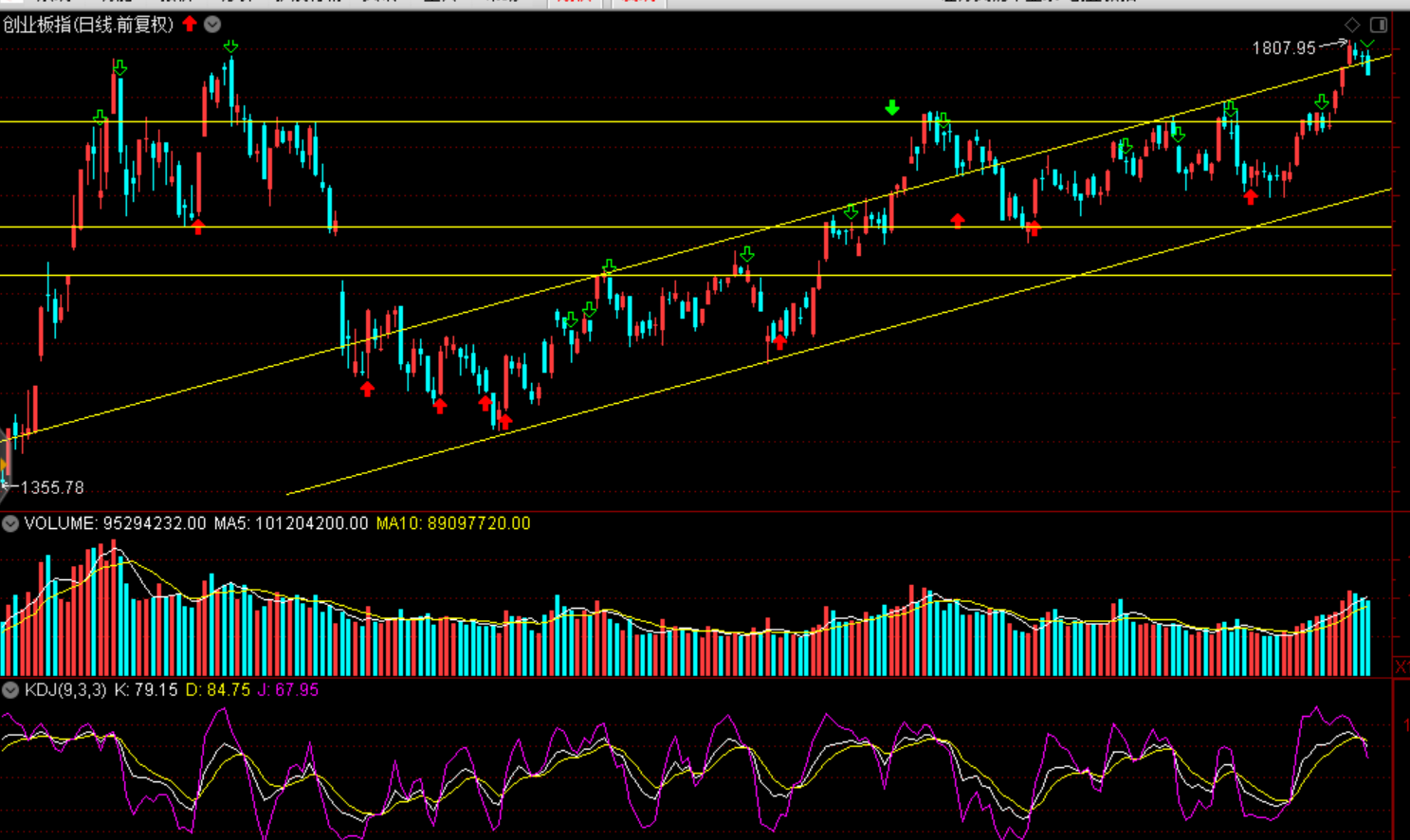 技術面:上周兩市股指沖頂受阻,本周面臨結構性調整;市場領漲指數(shù)創(chuàng)業(yè)板50(399673)受阻去年4、5月密集成交壓力,謹慎階段頭部出現(xiàn)。