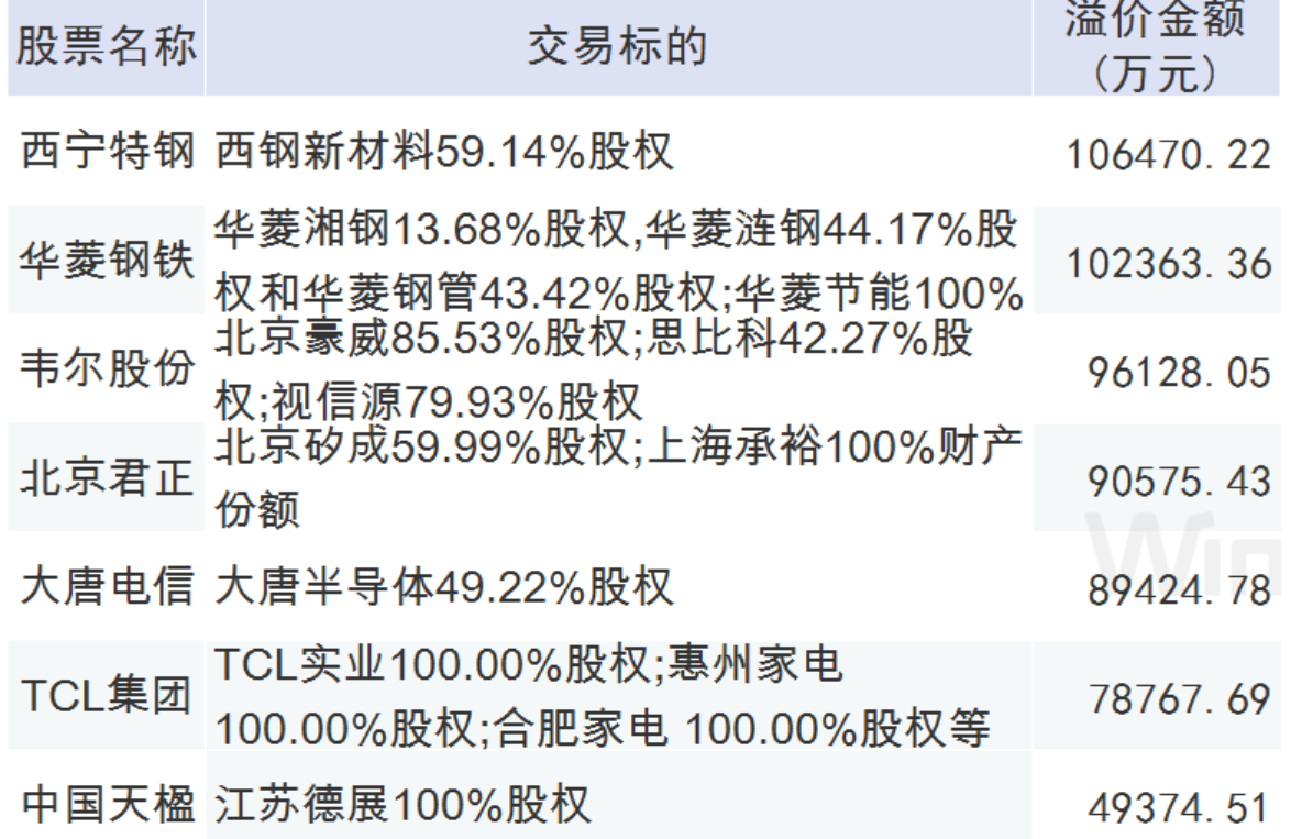 2019年高溢價(jià)并購(gòu)重點(diǎn)標(biāo)的: