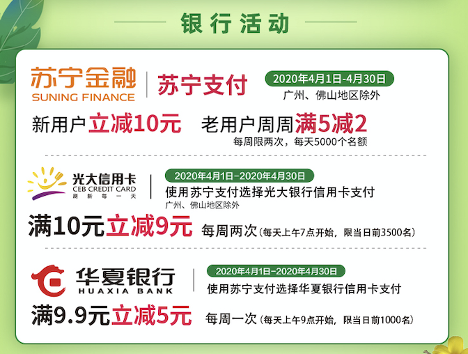 蘇寧小店為418大促亦開啟福利,用蘇寧支付新老用戶可享支付立減,每周滿減、新人券包以及華夏、光大銀行信用卡滿減等優(yōu)惠福利。即日起至4月30日,新用戶在蘇寧小店門店使用蘇寧支付消費享受立減10元優(yōu)惠,蘇寧小店全場大牌3折起,更多爆款可下載蘇寧小店APP,隨時到家,近在身邊。