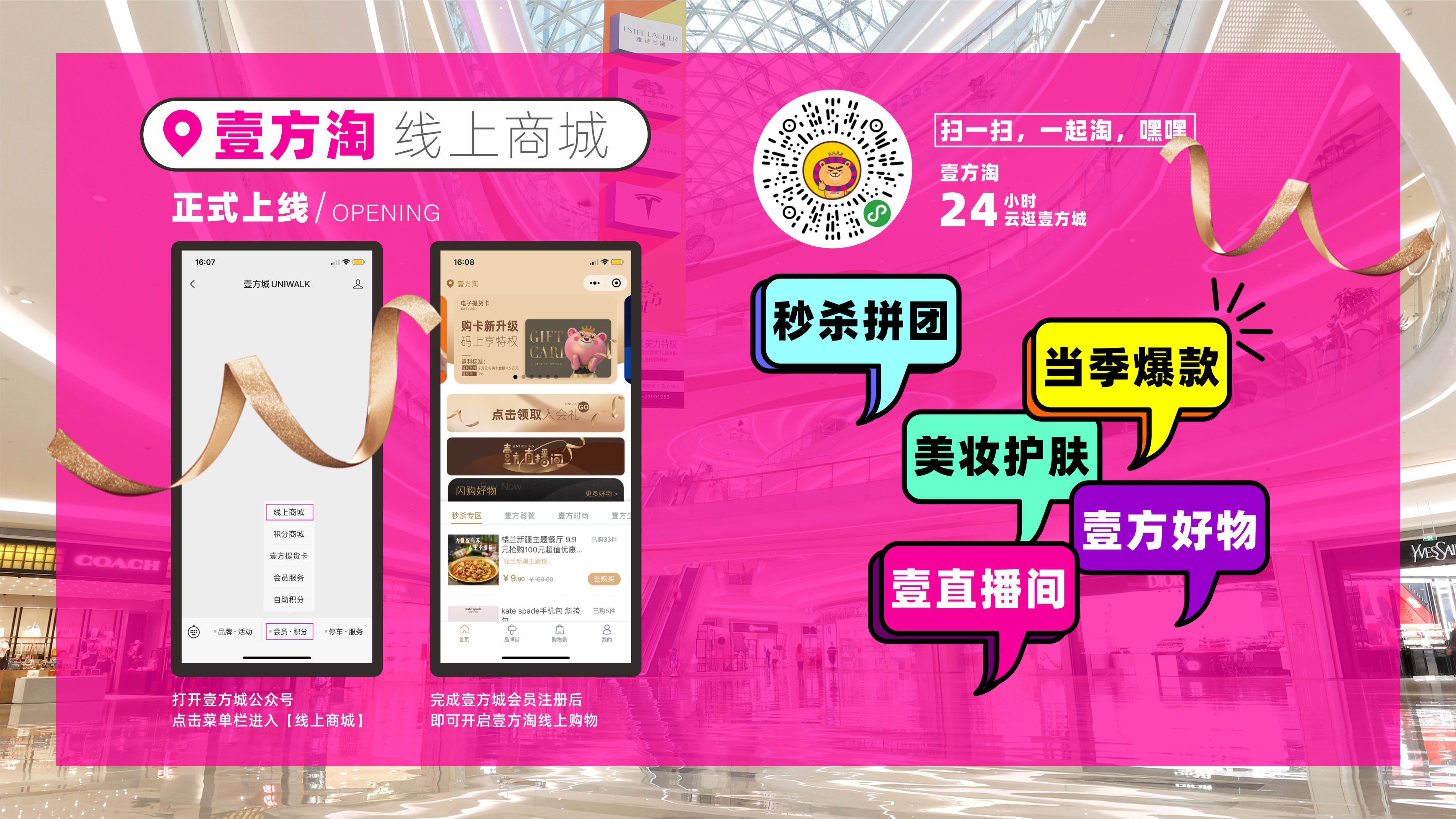 此前,壹方城、壹方天地24小時不打烊的線上版購物中心——“壹方淘”線上小程序已開啟試運營。6月15日,通過功能的升級,壹方全新的線上商業(yè)版圖正式開啟,帶來嶄新的購物體驗。借助線上商城,壹方將打通線上、線下,并在自身優(yōu)勢的基礎上巧妙嫁接聯(lián)動資源,快速激活線上存量價值,為私域流量池儲存更多潛在客群。