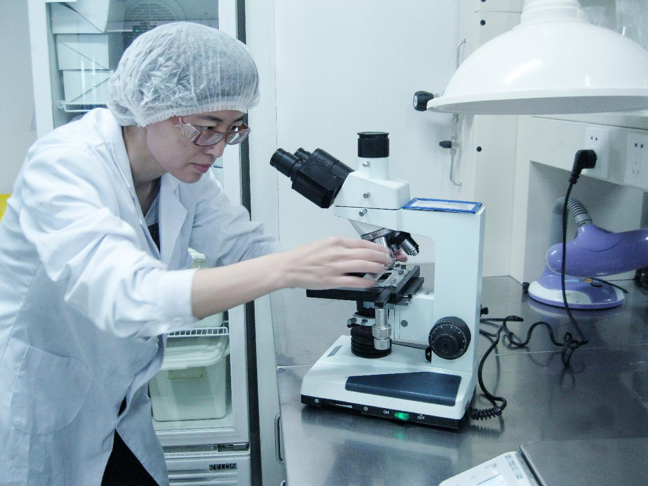 伊利質(zhì)檢人孟根花在進(jìn)行產(chǎn)品微生物檢測(cè)