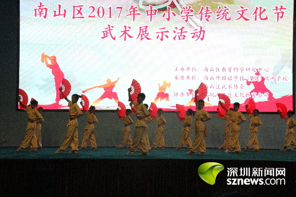 南山區(qū)2017年中小學(xué)傳統(tǒng)文化節(jié)武術(shù)展示活動(dòng)由南山區(qū)教育科學(xué)研究中心主辦,南山外國語學(xué)校(集團(tuán))大沖學(xué)校和南山區(qū)武術(shù)協(xié)會承辦。南山區(qū)教育科學(xué)研究中心主任余耀賢介紹,為進(jìn)一步弘揚(yáng)優(yōu)秀中華傳統(tǒng)文化,落實(shí)立德樹人的根本任務(wù),南山區(qū)教育局舉行了首屆傳統(tǒng)文化節(jié)活動(dòng),開展了經(jīng)典詩詞特色展演、中小學(xué)書法大賽、中國戲曲和民族樂器比賽、中小學(xué)生圍棋大賽、傳統(tǒng)文化沙龍和專家報(bào)告等形式多樣的活動(dòng)。