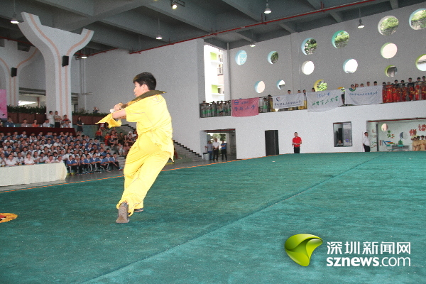 深圳新聞網(wǎng)訊(記者 王志明 通訊員趙小平)長拳如虹,刀光棍影。5月26日,南山區(qū)2017年中小學(xué)傳統(tǒng)文化節(jié)武術(shù)展示活動(dòng)在南山外國語學(xué)校(集團(tuán))大沖學(xué)校精彩上演,來自南山區(qū)西麗二中、南頭城小學(xué)等16所學(xué)校幼兒園的師生“以武會友”,進(jìn)行了太極劍、南拳和刀術(shù)等48個(gè)項(xiàng)目角逐,并向大家展示了所學(xué)到的“中國功夫”。南山區(qū)副區(qū)長練聰觀看了武術(shù)展示。