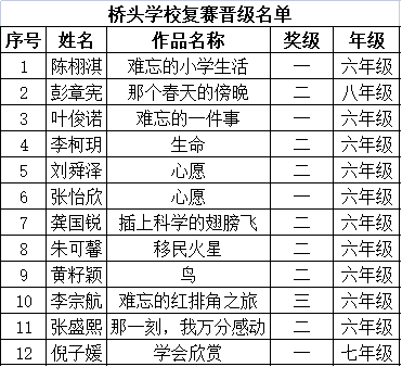 自2021年1月,活動征稿啟動以來,獲得了深圳市廣大中小學(xué)生、教師、文學(xué)愛好者的熱烈響應(yīng)積極參與,吸引了深圳百余所學(xué)校的上萬人關(guān)注報名?,F(xiàn)公布寶安區(qū)橋頭學(xué)校第二批晉級復(fù)賽名單如下: