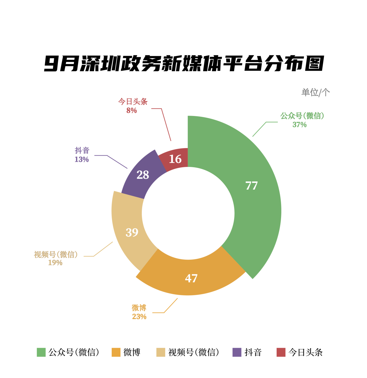 《深圳優(yōu)秀政務(wù)新媒體矩陣》將深圳黨政機關(guān)、企事業(yè)單位開設(shè)的政務(wù)公眾號(微信)、微博號、抖音號、視頻號(微信)及頭條號按照發(fā)布指數(shù)、互動指數(shù)、傳播指數(shù)三項指標(biāo)進行綜合評價,最終形成優(yōu)秀名單。